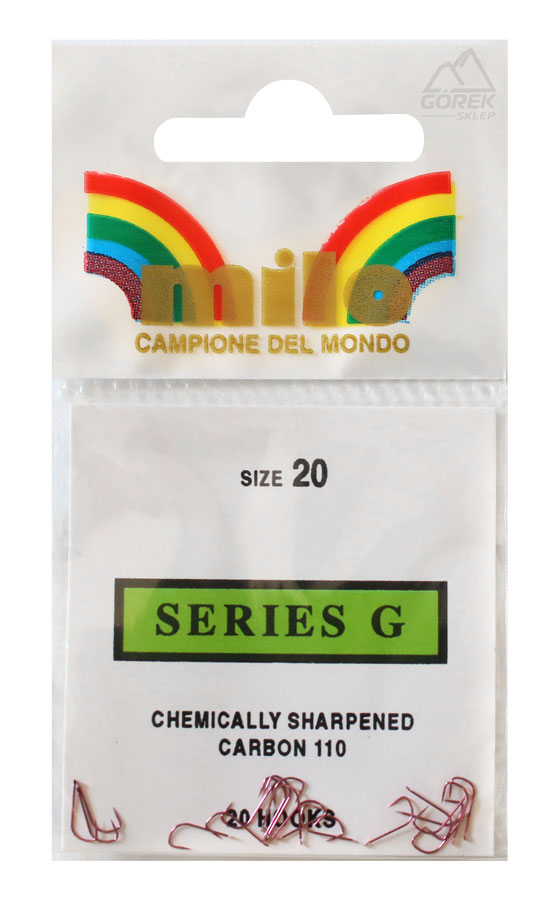Milo Seria G to haczyki stworzone do finezyjnego łowienia – szczególnie na ochotkę, podczas najtrudniejszych brań, gdy nawet klasyczne delikatne haczyki wyczynowe okazują się zbyt toporne dla ostrożnych płoci i leszczy.